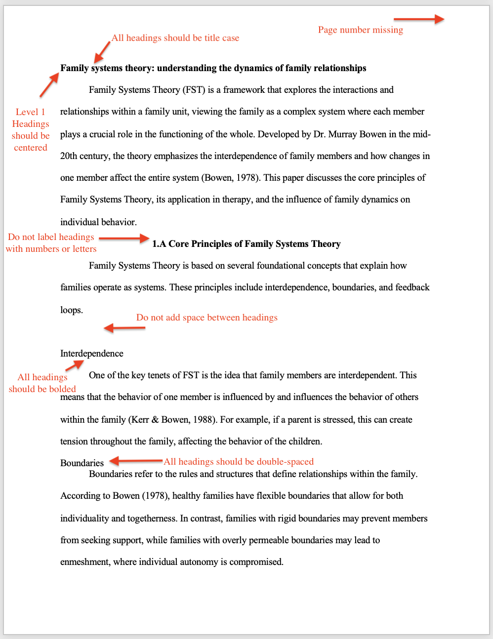While we are only explaining Level 1 and Level 2 headings here, there may be times in your academic work when it will make sense for you to include other levels of headings. You should make sure to understand the formatting of these levels and incorporate them into your writing appropriately.