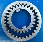 Figure 29 depicts a governor from a GM THM 350 three-speed transmission. Inside the polished housing is a spool valve, while the blue drive gear meshes with the transmission’s output shaft gear. The gold-colored section contains centrifugal weights that move the spool valve in proportion to rotational speed, thereby regulating how much fluid passes through. Line pressure enters the assembly and exits as governor pressure.
