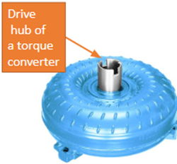 All transmission pumps are mechanically driven by the engine. The center gear of the pump (see Figure 9) has two drive lugs that engage with the torque converter’s drive hub. The hub itself (shown in Figure 10) contains two square notches that match perfectly with the pump’s gear lugs. This direct connection ensures that whenever the engine is running, the pump gears turn.