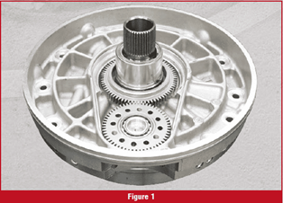 For example, Figures 11 and 12 show an off-set pump design from a Ford 10R80 transmission. The gear located in the transmission’s front cover (highlighted with a red arrow in Figure 11) is driven by the torque converter. That gear then drives a second gear, which in turn drives the pump mounted off to the side. Altogether, there are three gears: the torque converter-driven gear, the secondary gear, and the pump’s own drive gear. This off-set arrangement has become very common in today’s transmission designs. Figures 11 and 12 When discussing transmission pumps, there are two main types to consider: