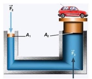 To better appreciate the power of fluid motion, look at Figure 2. This diagram shows how Pascal’s Law makes it possible to lift a car. When a force is applied to the smaller piston (A1), it produces pressure that is transmitted to the larger piston (A2). If the larger piston has ten times the surface area of the smaller one, the resulting force at F2 will be ten times greater than the input force at F1. In other words, a relatively small effort applied at one end can multiply into a very large lifting force at the other end—enough to raise a vehicle. | ![]() |