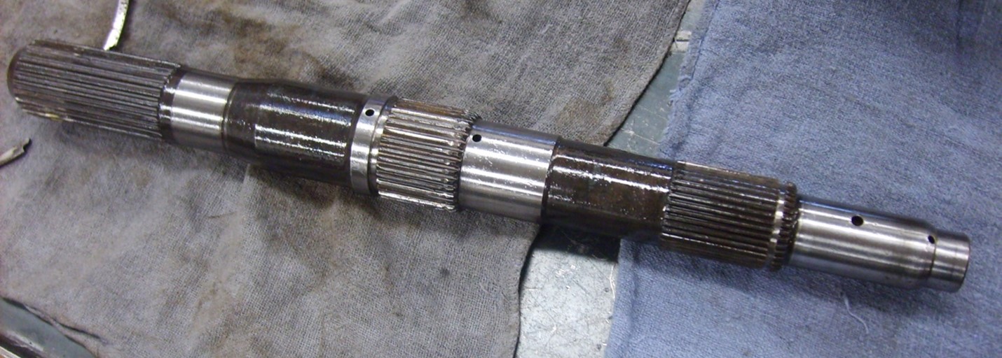 Figure 40 shows the main shaft drilled holes. Fluid passes through these passages and exits through the holes, which are precisely machined to direct lubricant to critical areas of the transmission.