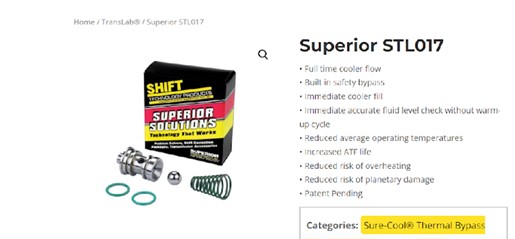 For example, Superior manufactures a Sure-Cool Thermostatic Bypass Kit (part STL017) for a range of Ford four- and six-speed transmissions including the 4R70W, 4R75E/W, 6F35, 6R80, 6R80/90, and 6R90. This kit prevents overheating caused by a stuck thermostat valve in the OEM housing.