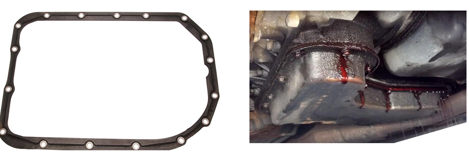 The type of gasket used also matters. Cork gaskets are low-quality and should generally be avoided. Most modern transmissions now use reusable gaskets (see Figure 36). These are durable, reliable, and can be reused multiple times. They usually feature raised rubber ribs and steel collars around the bolt holes, which help maintain a consistent seal without over-compression.
