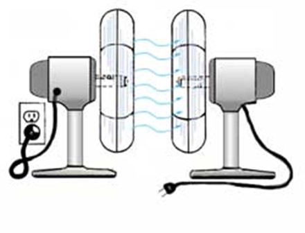 A torque converter works much like the demonstration in Figure 12. Imagine two fans facing each other. One is plugged in and powered, while the other spins only from the air moved by the first fan.