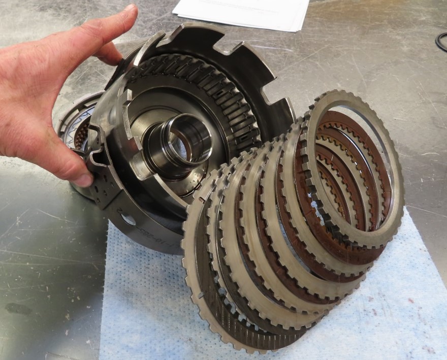 For example, if the 2-3-4-6-8 clutch fails, the transmission will only have 1st and Reverse, and the driver will experience engine flare (the engine revs but the car doesn’t move) when trying to shift into 2nd gear. In other words, the transmission “neutrals out” during the shift. Along with this, the transmission control module (TCM) would store a “gear ratio error” diagnostic trouble code (DTC).Range | Gear | 1-3-5-6-7 Clutch | 4-5-6-7-8 Reverse Clutch | 2-3-4-6-8 Clutch | 1-2-7-8 Reverse Clutch | 1-2-3-4-5 |