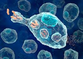 Phagocytes are specialized white blood cells such as neutrophils and macrophages that carry out the process of phagocytosis (You may click on this link to see a figure depicting Phagocytosis). As previously described, phagocytosis is a process where foreign material and pathogens are engulfed and destroyed by the white blood cells. Any potential pathogens that break through the physical barriers can be recognized and destroyed by phagocytes. Neutrophils are the most abundant type of white blood cell in the blood and will exit the bloodstream at inflamed tissues in large numbers. The accumulation of white blood cells at the site of an infection contributes to the buildup of pus at these sites. Many times, the phagocytes are effective at destroying the invading pathogens before they can cause an infection, giving us protection from disease.