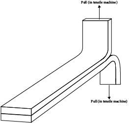 Both destructive and nondestructive testing are common. Because of the particular failure modes of adhesives (as opposed to bulk materials), peel tests are the most important mechanical test. The simplest of the peel tests is the T-peel (named for the shape of the specimen, which is depicted in Figure 21.7). In this test the specimen is prepared by bonding together the substrates (which are shaped appropriately) using the techniques to be employed in the actual process and then pulling the two parts of the specimen apart using a tensile test machine. Other destructive tests include the various lap shear tests and tests that use the exact joint configuration of the actual parts to be joined.