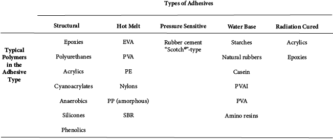 Table 21.2 Types of Adhesives and Common Polymers within each Type