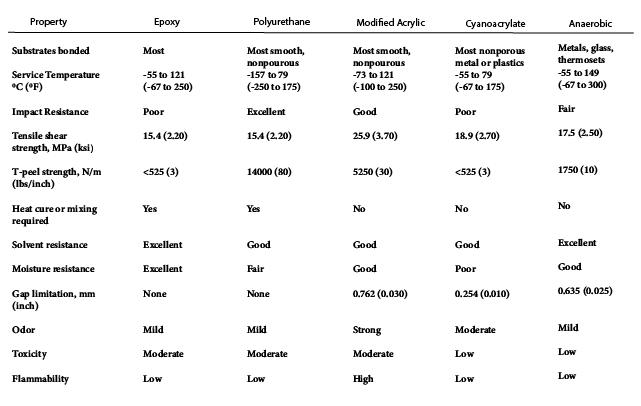 Table 21.3 Typical properties of Widely Used Adhesives