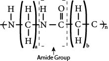 Figure 8.1 Polymer repeating unit for polyamides, where the subscripts a and b can vary depending upon the type of monomers used and n represents the number of repeating units in the polymer chain.