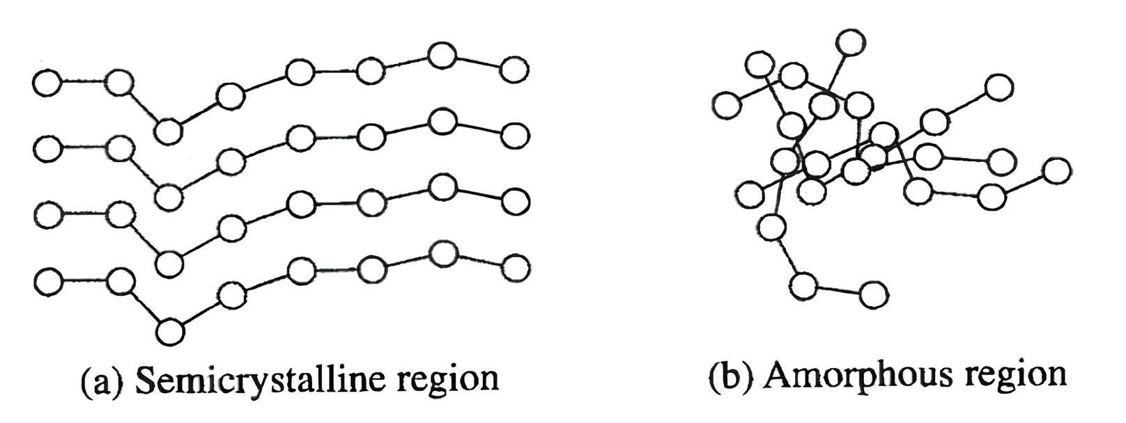Figure 3.1 Crystalline and amorphous regions in a polymer structure.
