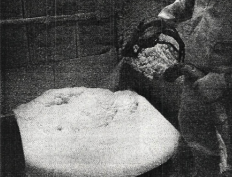 Figure 17.8 Skiving a foamed bun using a hot wire.