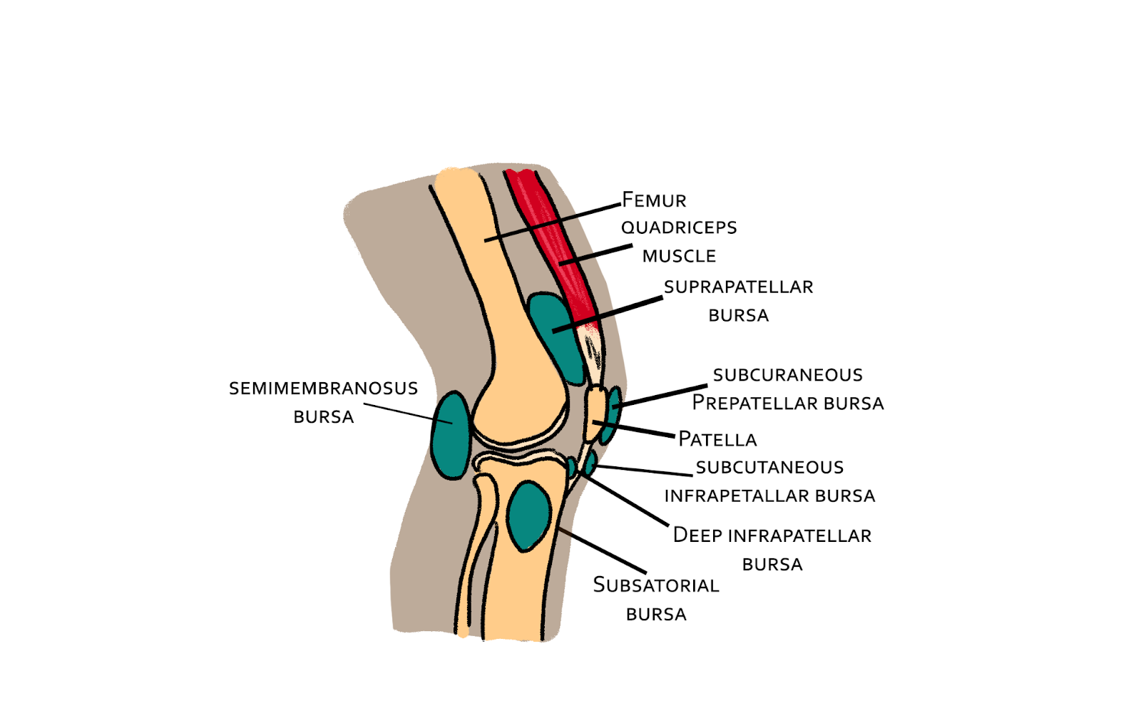 Meniscus – a crescent shaped plate of cartilage that functions to deepen an articular surface and serves to provide shock absorption to joints like the knee and sternoclavicular joints. (see Figure 7) Labrum – a type of cartilage that deepens a joint socket and serves as an attachment site for the joint capsule. The glenoid of shoulder and acetabulum of hip are examples (see Figure 8) Aponeurosis – a tendinous expansion of dense fibrous connective tissue sheath that anchors muscle to muscle or muscle to bone. (see Figure 9a) Fascia – a sheet of fibrous connective tissue that envelopes, separates, or binds together parts of the body like muscles, organs, or other structures. (see Figure 9b) Bursa – flattened sack of synovial membrane containing a film of synovial fluid. Bursae are typically located between a tendon and an adjacent joint structure, usually a bone, and help reduce the friction between the two structures. | ![]() Figure 9 ![]() ![]() Figure 10 ![]() Figure 11 ![]() |